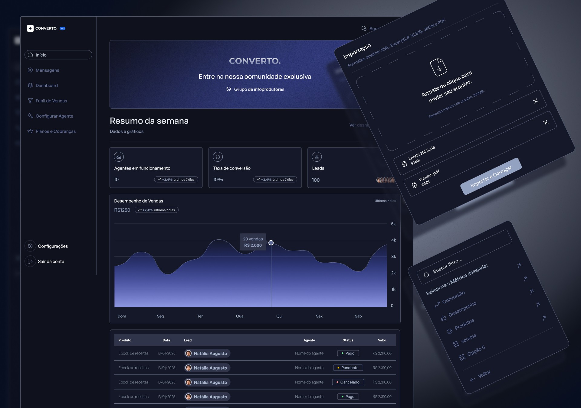 Sistema (SaaS) da Converto, uma plataforma com automação de IA para infoprodutores