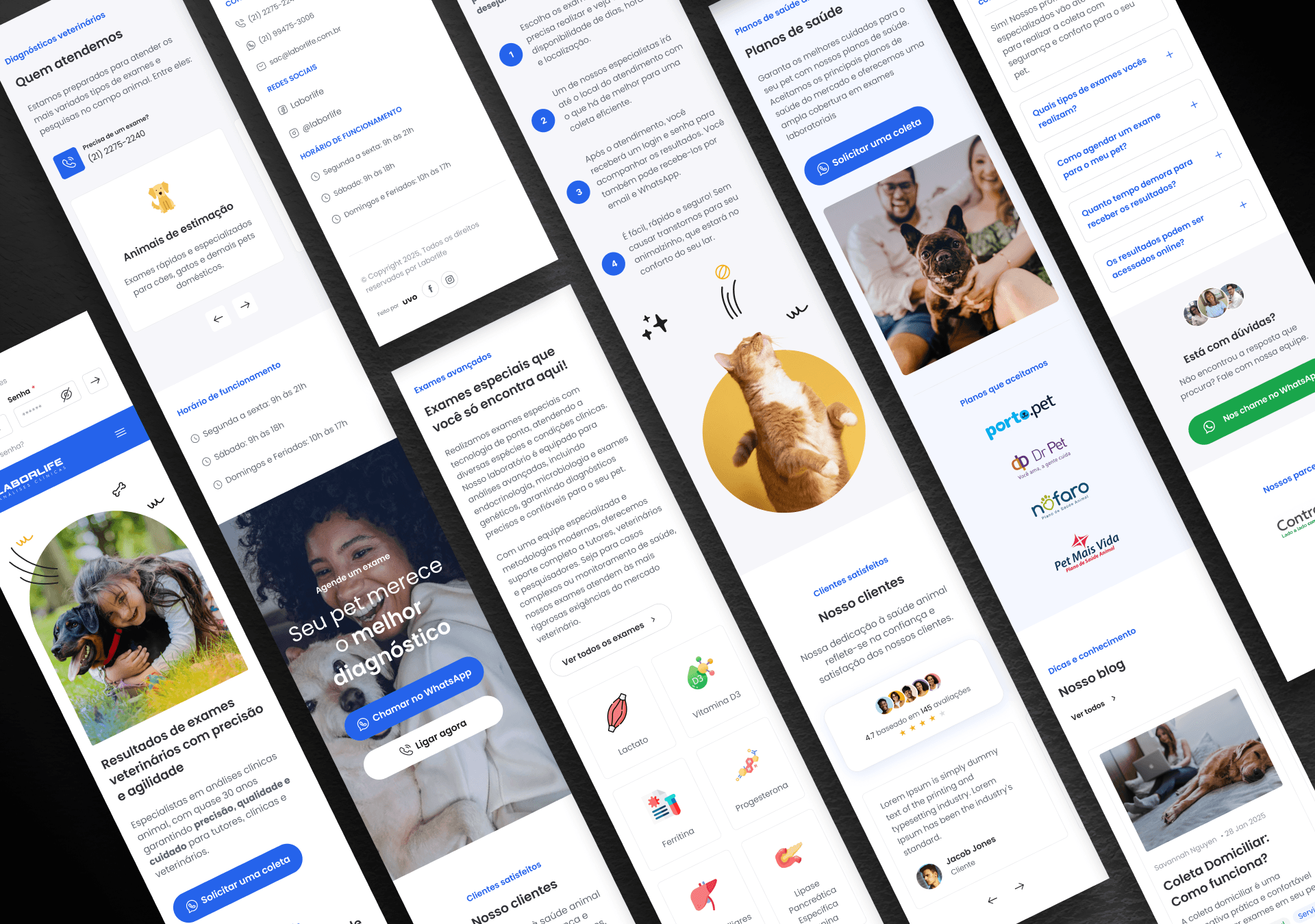 Projeto de UX/UI Design para site de laboratório de análises clínicas animal
